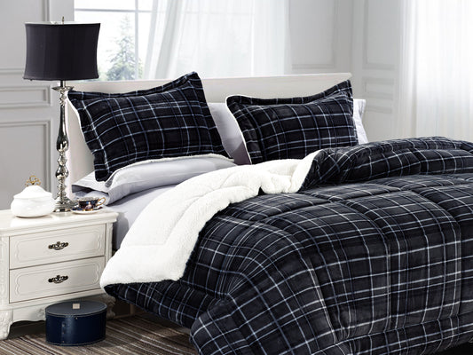 Luxury Bedding Outlet 3-Piece Plaid Micro-Suede Reversible Sherpa Comforter Set