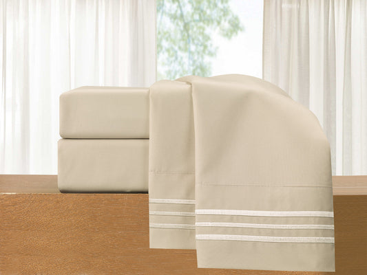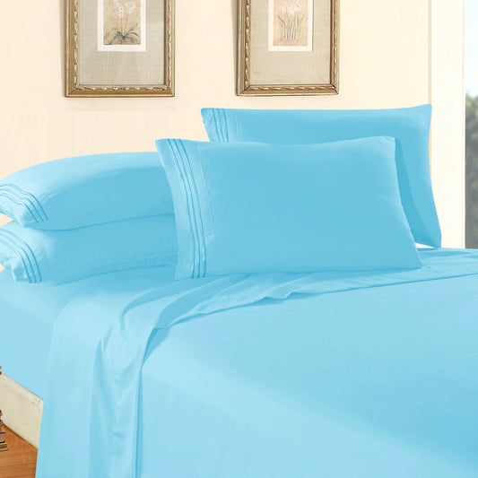 Luxury Bedding Outlet Premium Quality 6-Piece 3-Line Embroidery Sheet Set