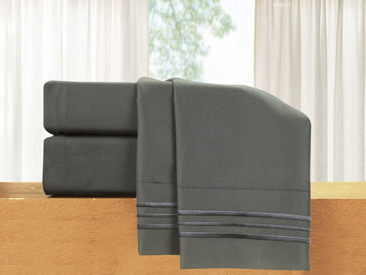 Luxury Bedding Outlet Premium Quality 4-Piece 3-Line Embroidery Sheet Set, Moody Shades