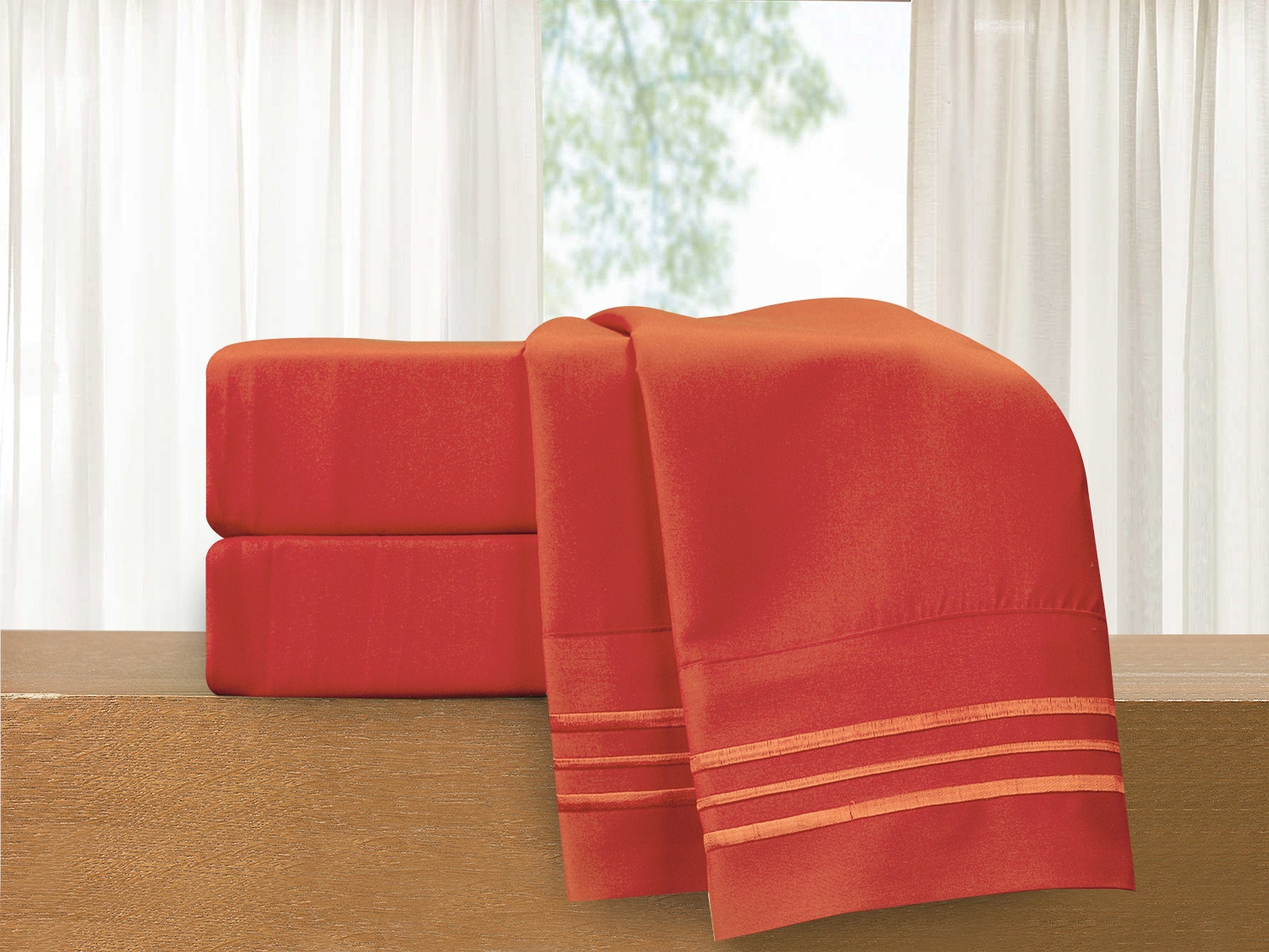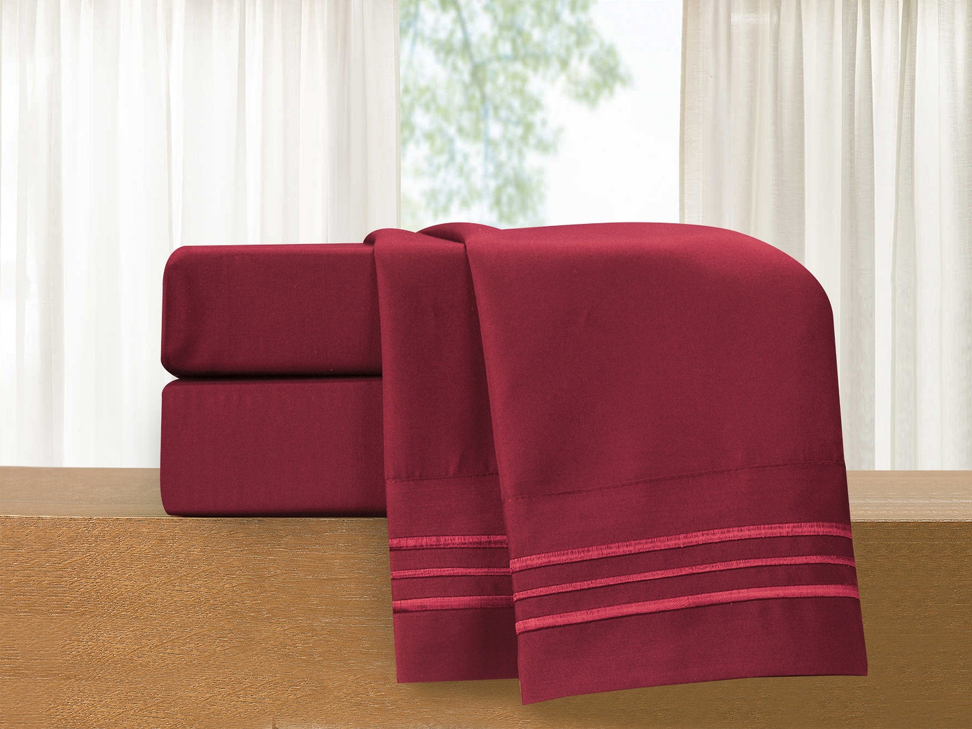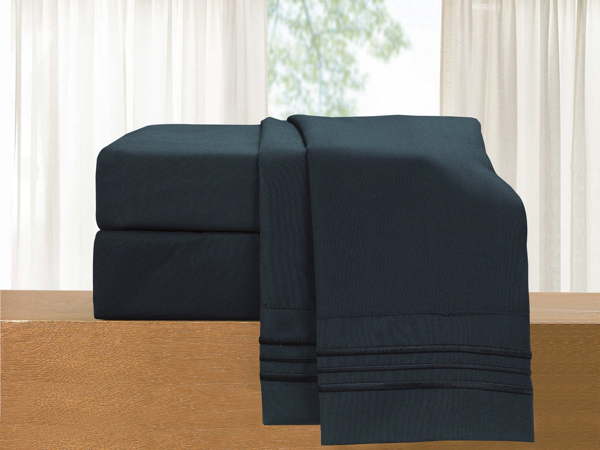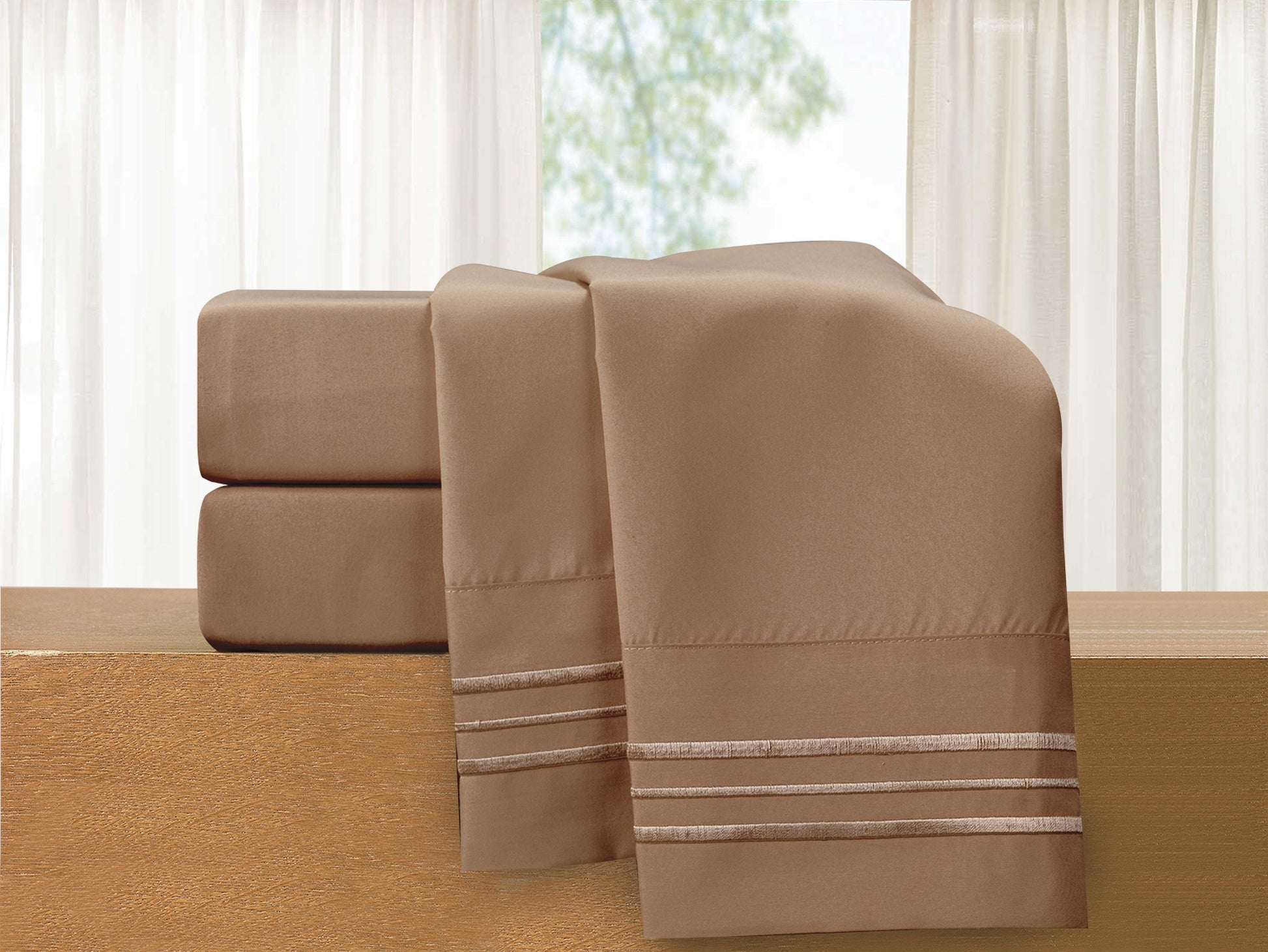 Luxury Bedding Outlet Premium Quality 4-Piece 3-Line Embroidery Sheet Set, Moody Shades