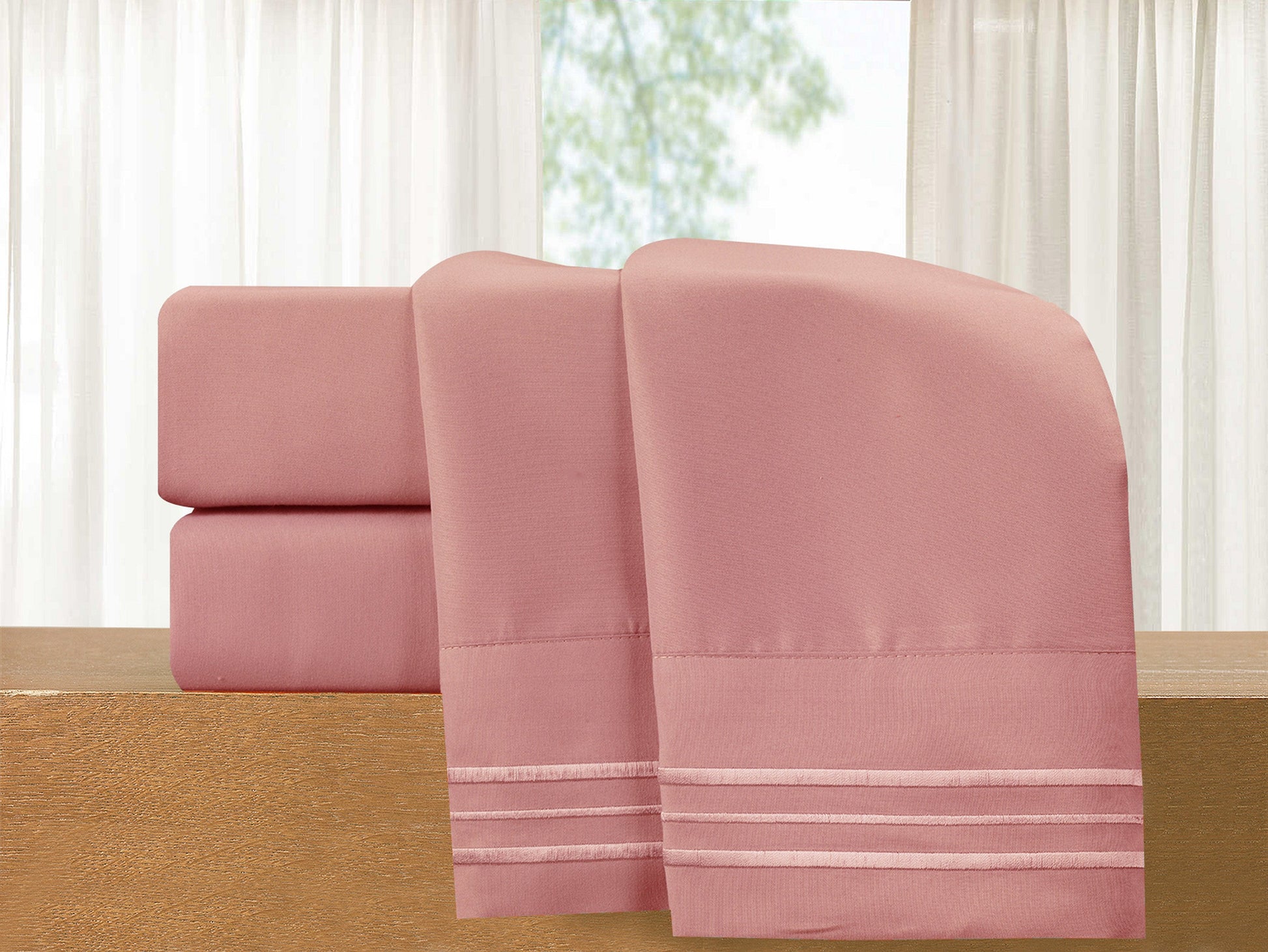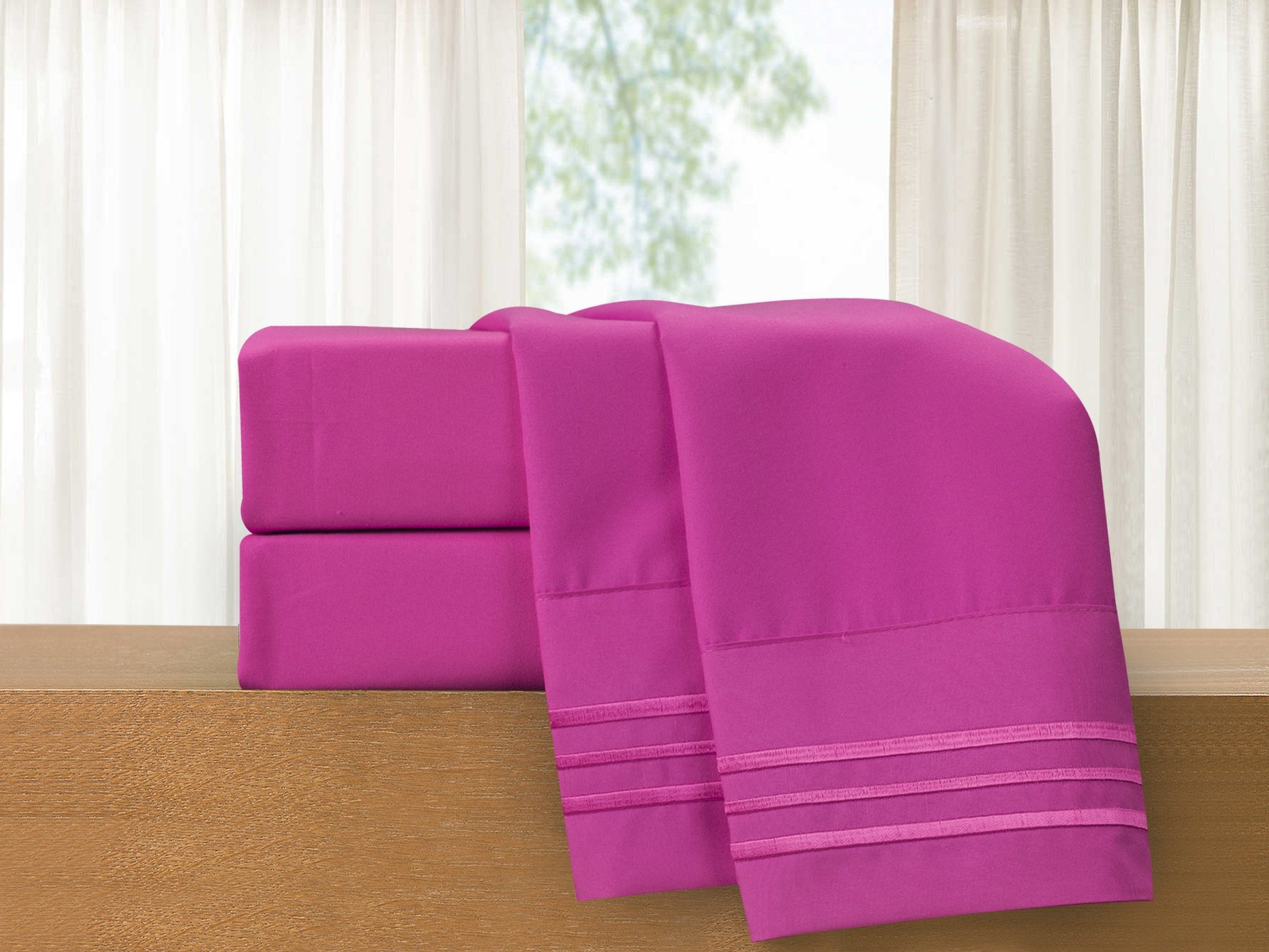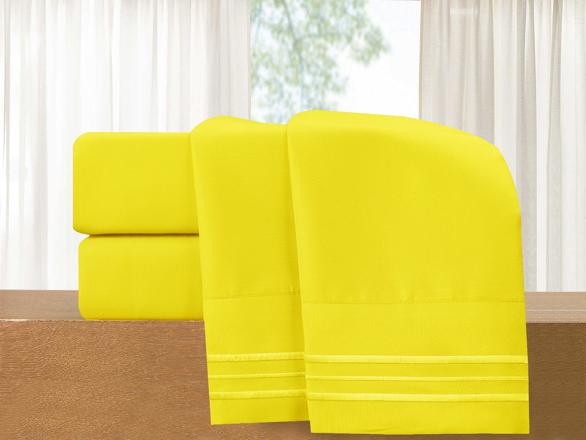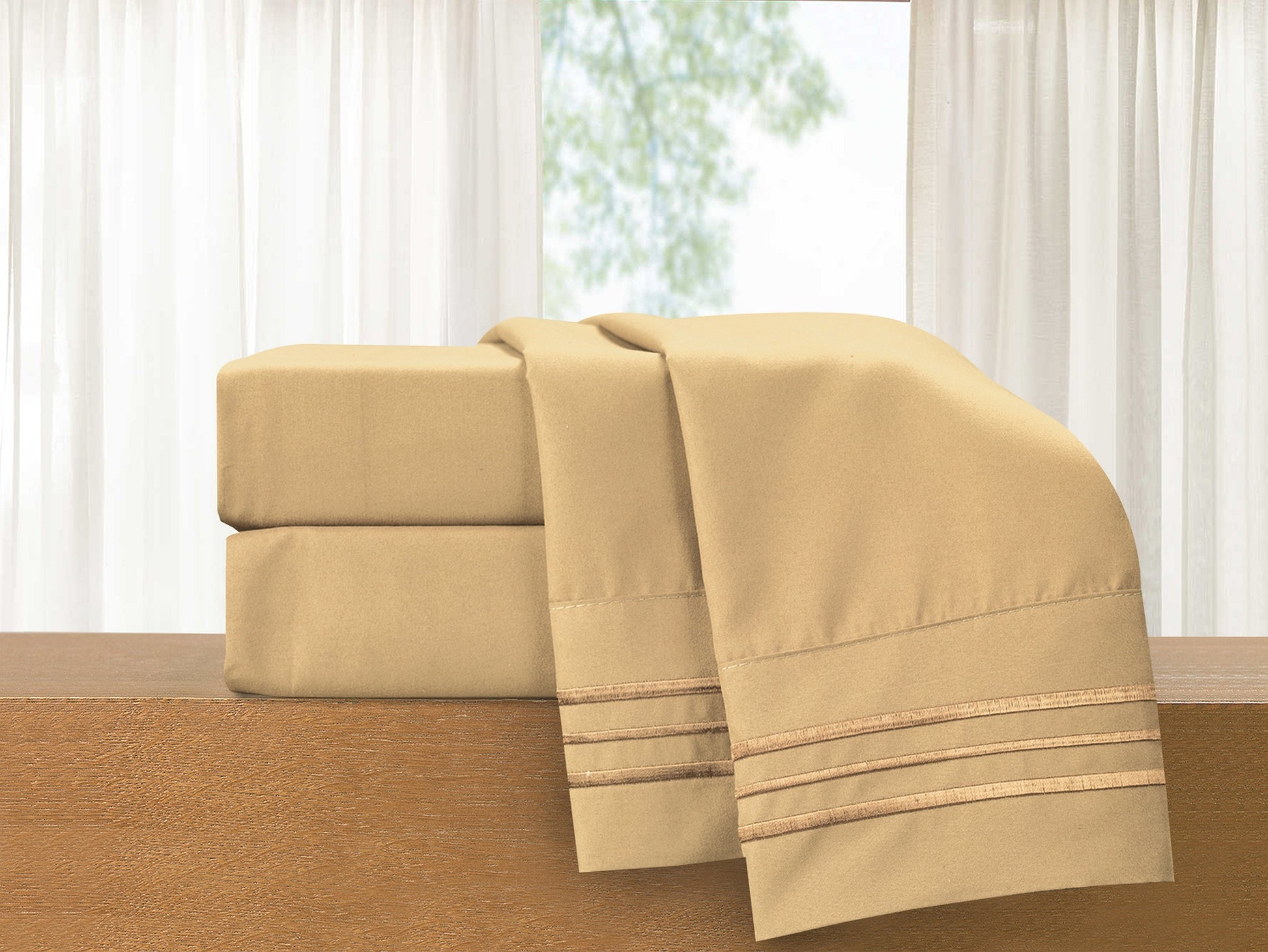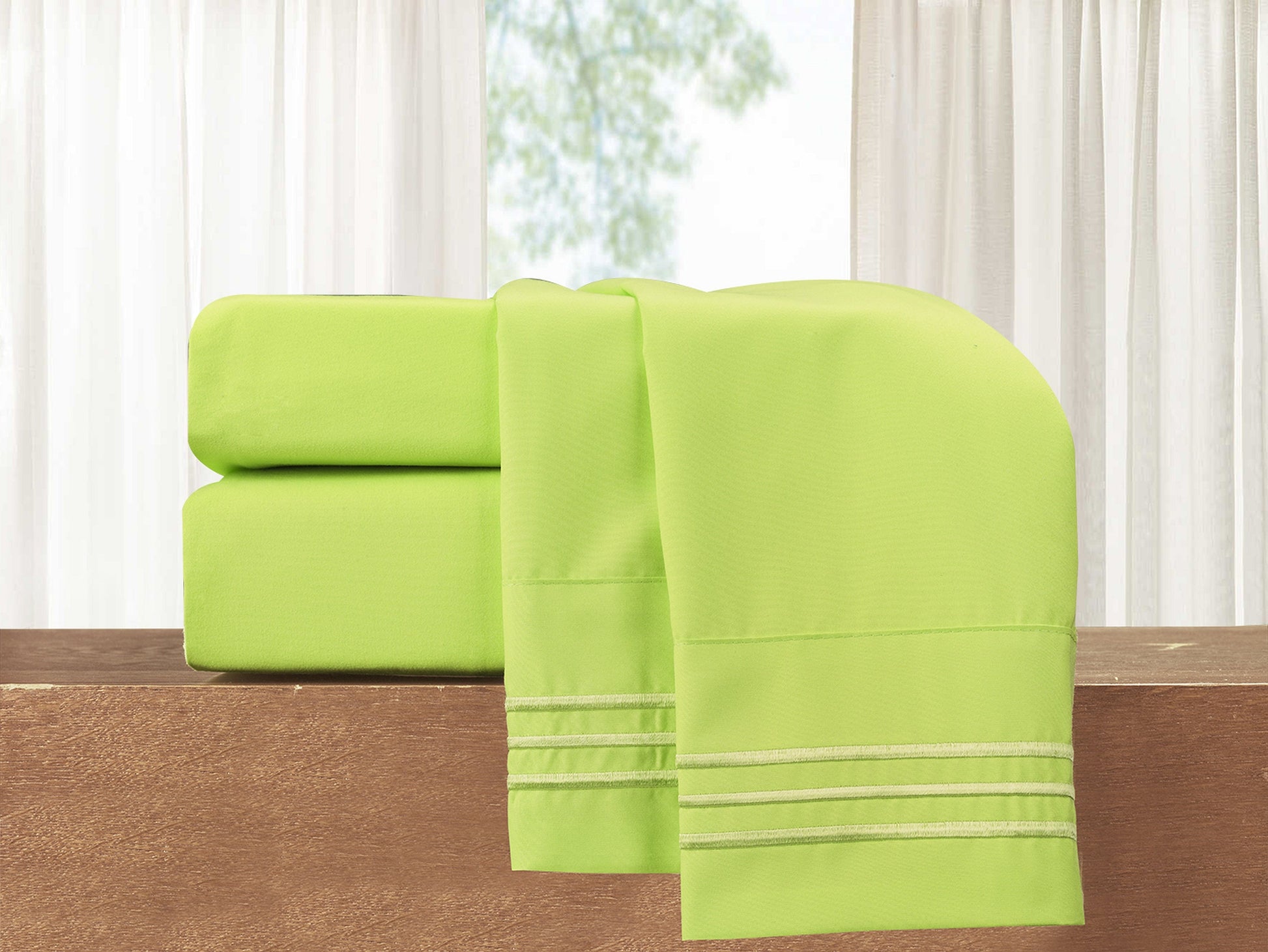 Luxury Bedding Outlet Premium Quality 4-Piece 3-Line Embroidery Sheet Set, Bright Shades