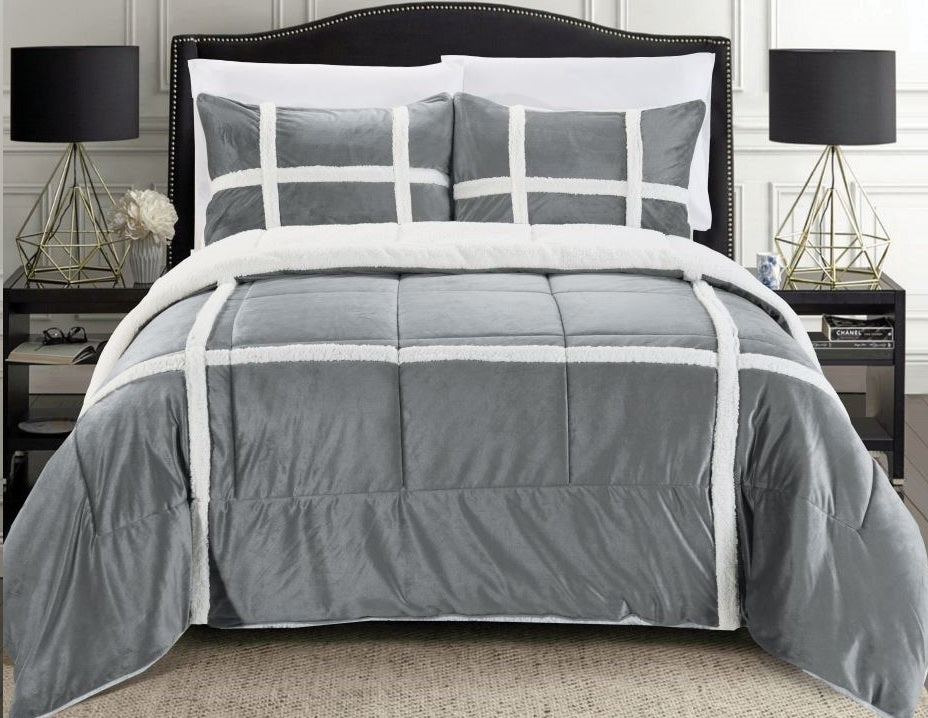 Luxury Bedding Outlet 3-Piece Stripe Micro-Suede Reversible Sherpa Comforter Set